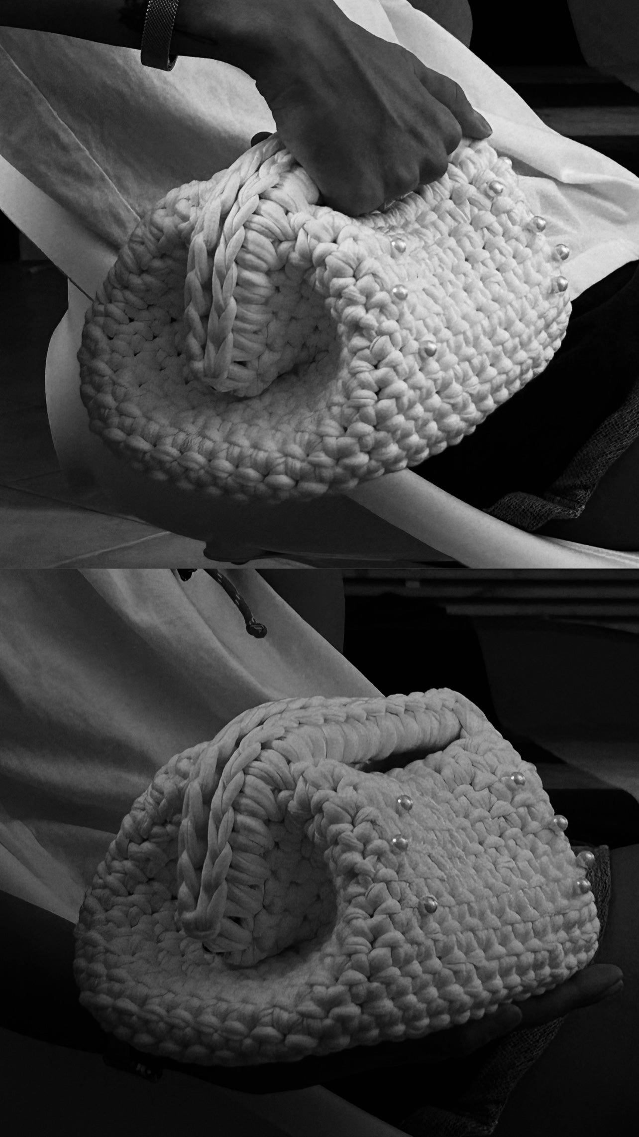 Clutch bag, 80% cotton 20% polyester, pure white, with hand-stiched pearls.